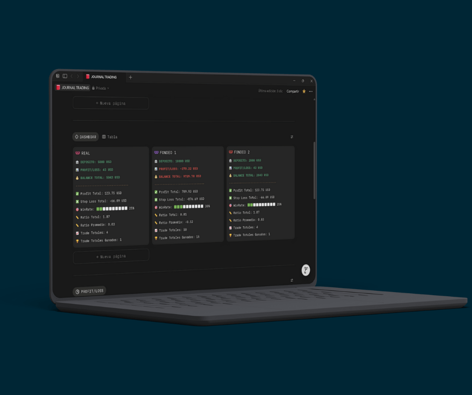 Ideal para: Traders que quieren iniciar su registro en Notion con cálculos automáticos y control de una sola cuenta.